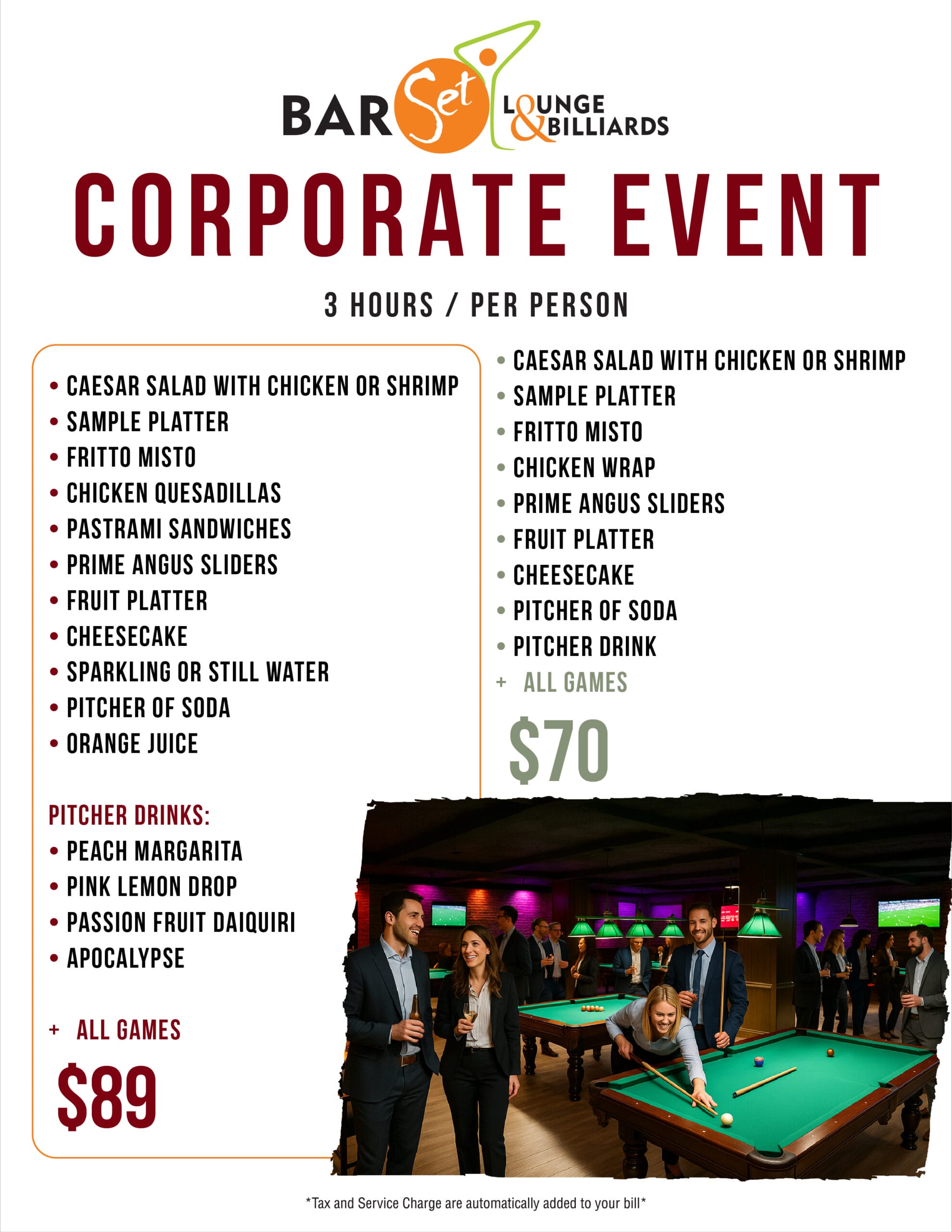 *Tax and Service Charge are automatically added to your bill*