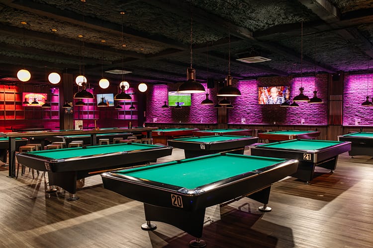Why stop at billiards when you can make it a full night out? At Set Lounge, our bar and kitchen are right by the tables, serving cocktails, beer, and delicious food to keep you fueled between shots. With TVs placed around the hall, you can catch every big play on screen while you line up your next shot. In Brighton Beach, it’s all about good food, great drinks, and endless games — all under one roof.
