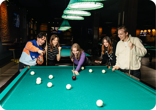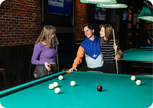 After a few frames of Pyramid billiards, you’ll want to refuel — and Set Lounge has you covered. Our bar serves cocktails, beer, and spirits, while the kitchen keeps you energized with tasty bites. TVs around the lounge mean you won’t miss live sports while focusing on your next shot. At Brighton Beach, it’s all about blending great games with good food, cold drinks, and a lively social scene.