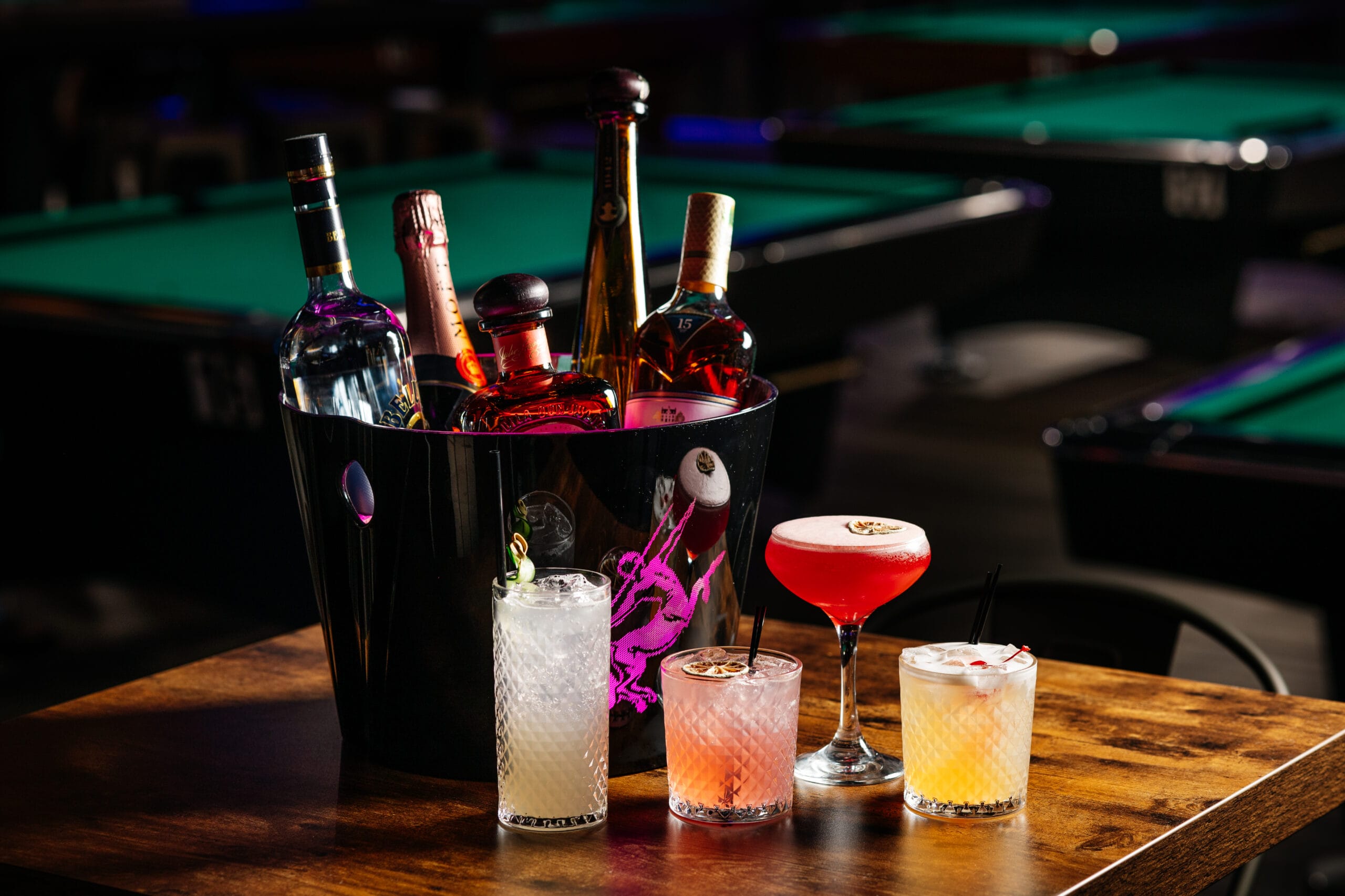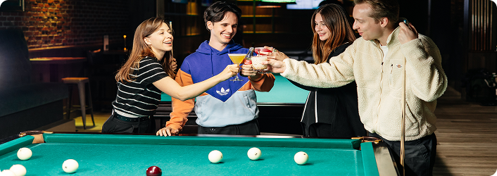 Classic pool experience with modern tables, vibrant atmosphere, and space to enjoy friendly or competitive games.